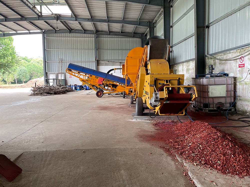 司现通过引进成套粉碎染色设备,将园林(植物)废弃物制成彩色有机覆盖物,实现资源化利用。目