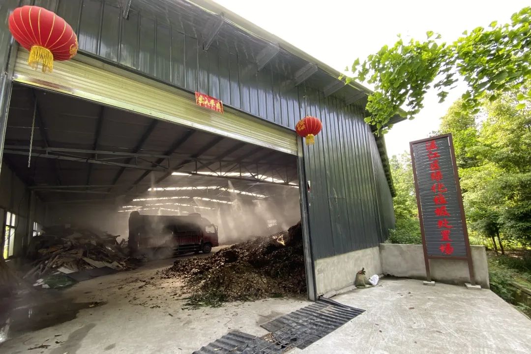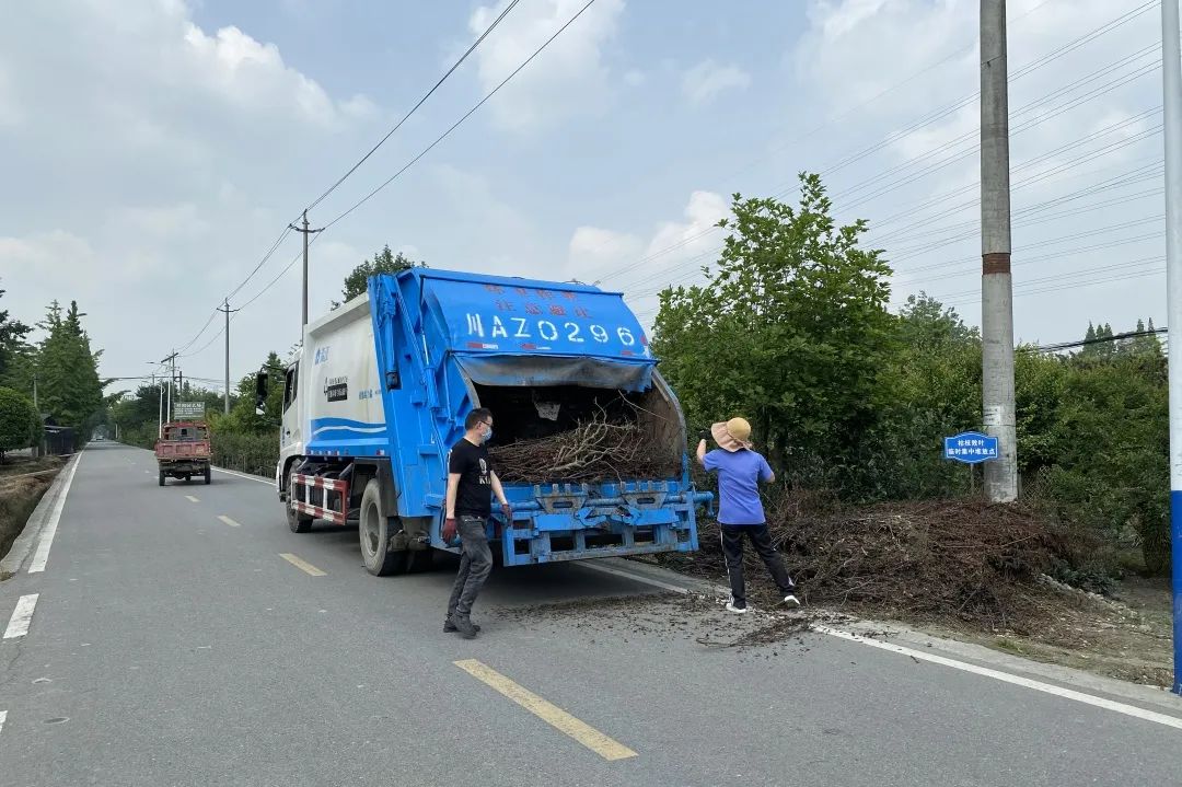 因园林绿化废弃物日产量较大,且本身不易压实、占用空间,来源广泛、不易收集,为此,和盛镇在全镇每个村社区都设立了枯枝败叶临时集中堆放点。农户将绿化垃圾放在集中堆放点后,由专业公司统一上门运输到绿化垃圾处置场内进行粉碎加工处理。